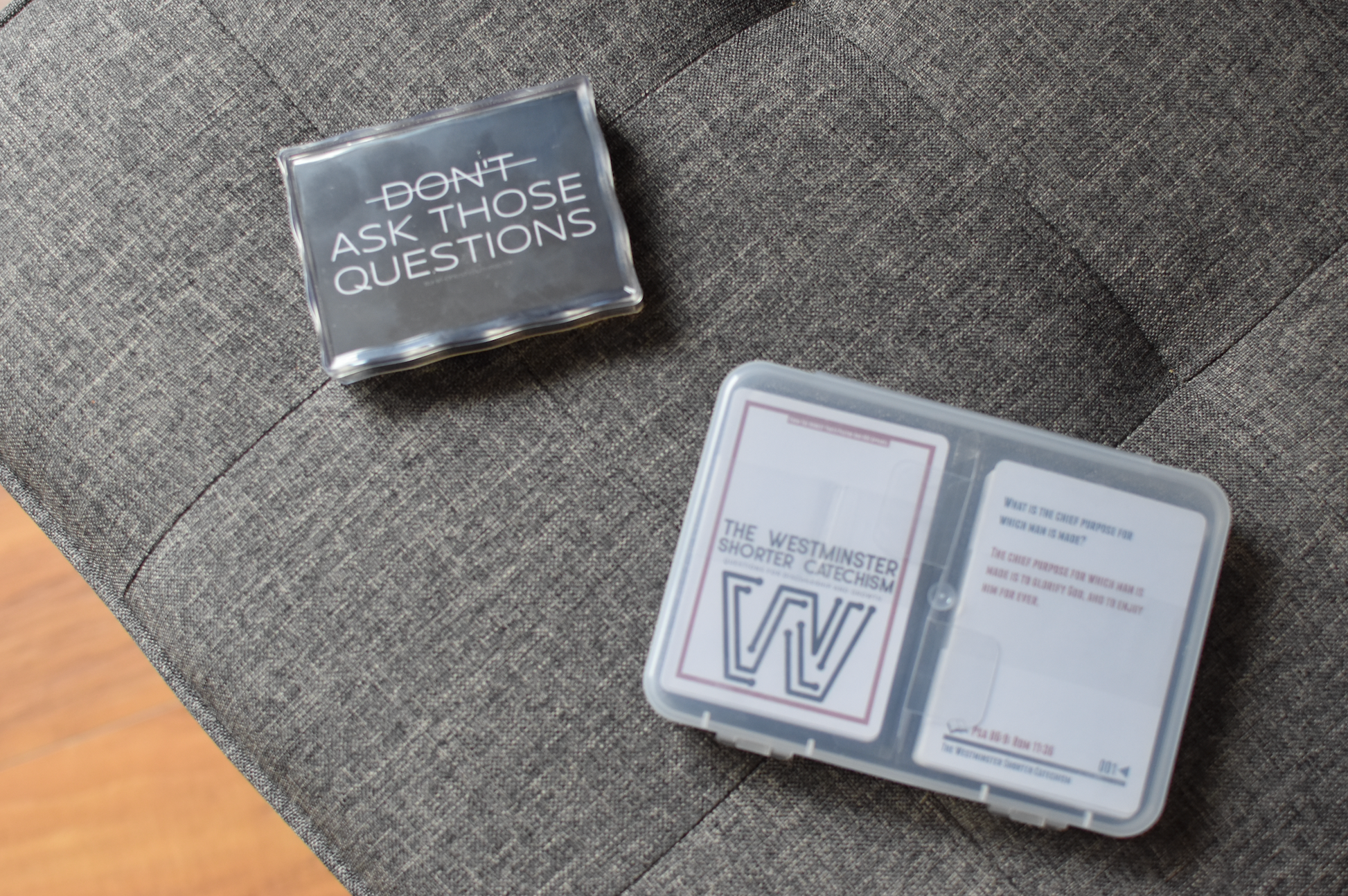 Buy both resource decks as a combo and save $5 instantly! Use the "Don't Ask Those Questions" deck to break the ice and enter into conversations within your small groups. Then use the Westminster Shorter Catechism deck to teach through and memorize important beliefs of the faith.
